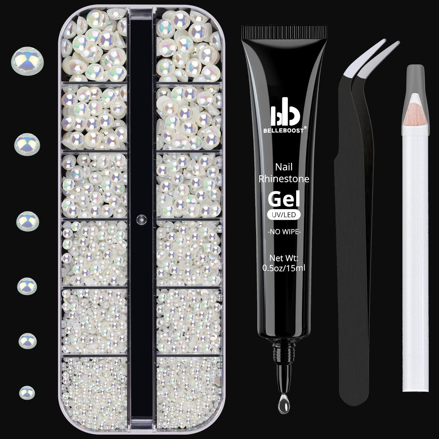 - ๐WHAT YOU WILL RECEIVE: This package contains 1 pc of 15ml tube design NO WIPE rhinestone gel glue; 1 box of flat back beige AB half round pearls; 1 pc of picker pencil and 1 pc of tweezer. This set helps you decorate your nails more conveniently.