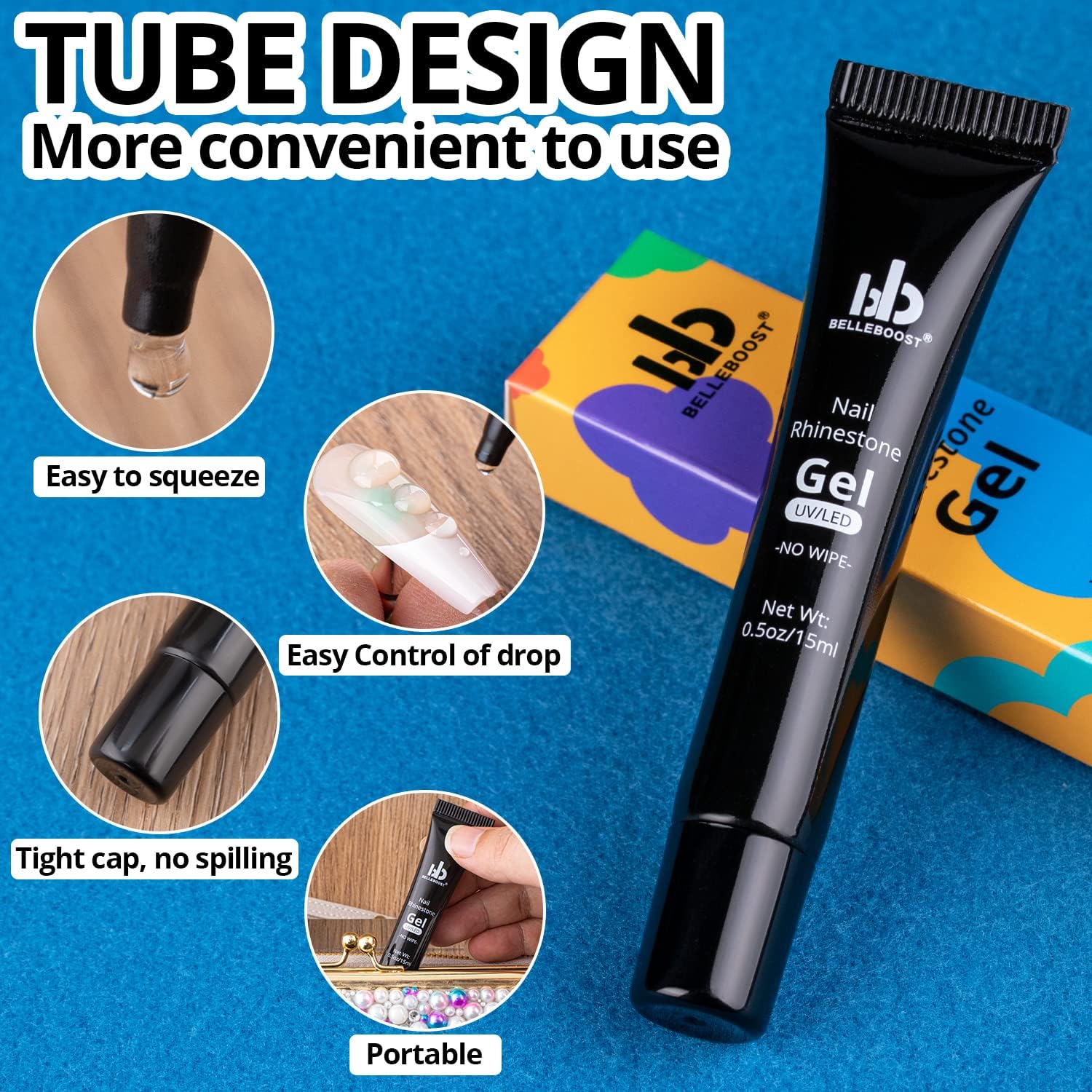 - ๐NO WIPE TUBE DESIGN GLUE: For your better experience for nail art decoration, the tube glue gel is very easy to squeeze and dot directly to the place you want to stick gems with no mess. It is easy to control the amout for sticking both big and small stones. This nail glue gel is much easier to carry and store with no leakage.