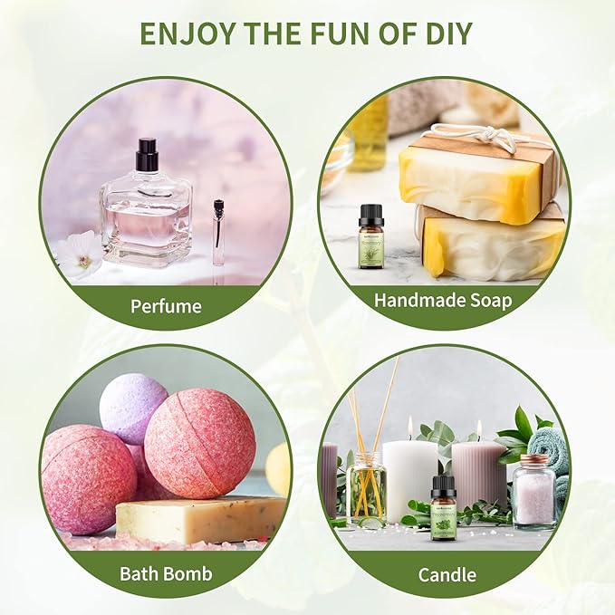 - Widely Used: Suitable for diffuser, cleaning, massage, perfume, home, bedroom, living room, bathroom, office, aromatherapy, outdoor, soap or candle making, yoga studio, car and spa, etc.