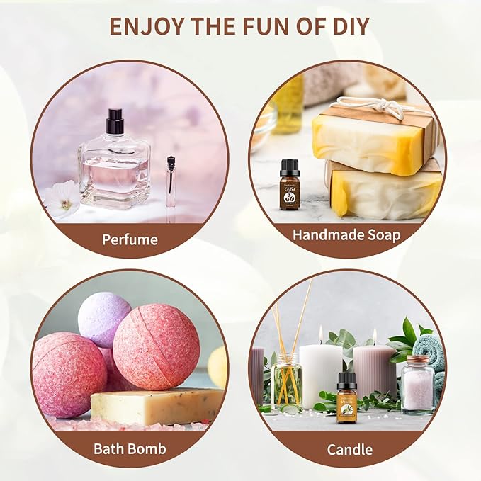 - Multiple Uses: Our Essential oil can be used a diffuser, also to make perfume, scented candles, cleaning products, slime making, bath bombs, soaps or for bath, massage and home care. Pure essential oils are for external use only!