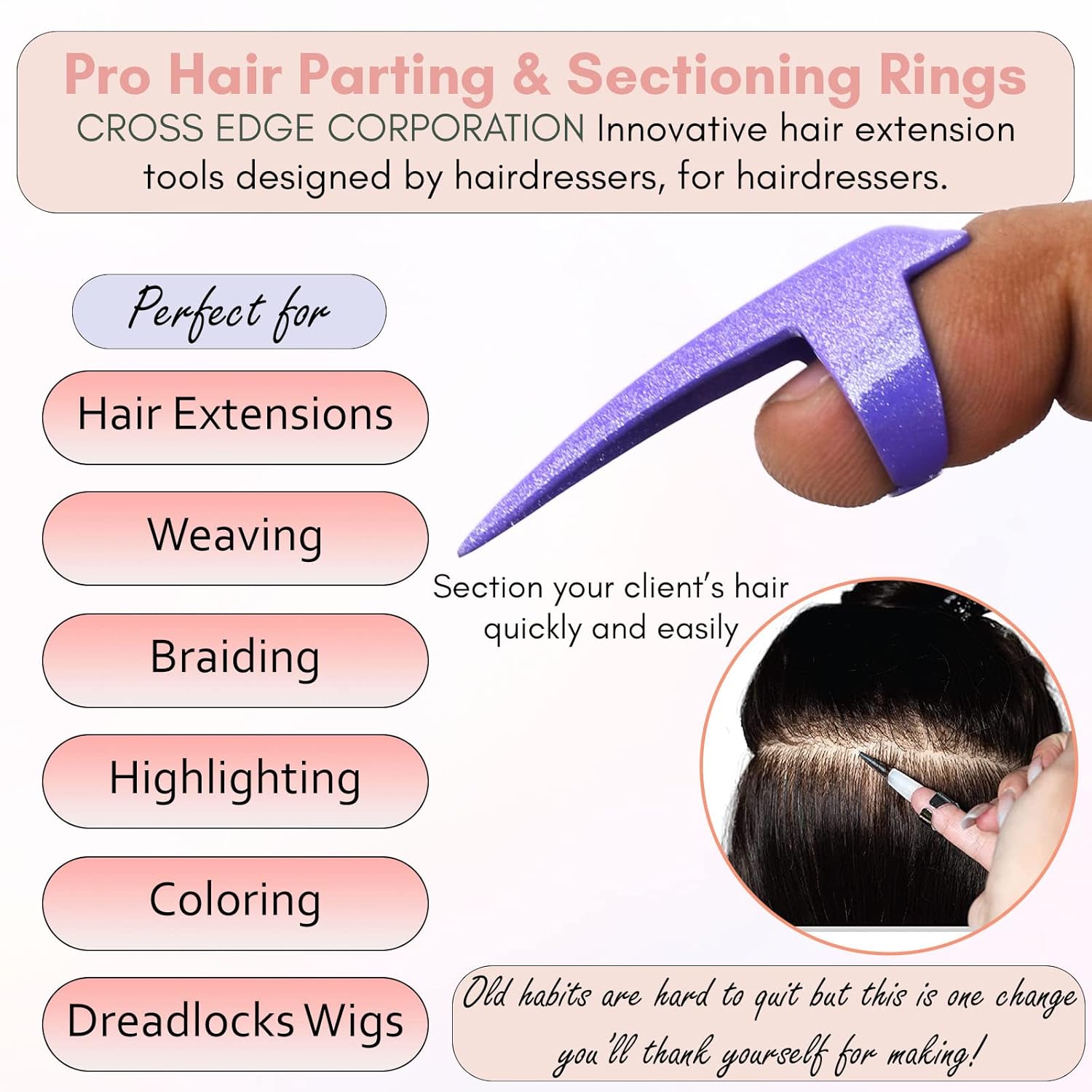 - ๐ Widely Used - hair parting tools are widely used in tape in hair extensions, micro beads hair extensions, hand tied weft hair extensions, wigs, real hair extensions, dirty braids, hair braiding, and other fields. hair braider sectioning rings are suitable for home use and hair salon applications. saves time by making hair parting easy. fits on any of your fingers. useful during all installations