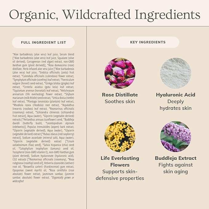 - ORGANIC & WILDCRAFTED - Our skin care products are naturally formulated, with organically grown and wildcrafted ingredients. We work with small farmers and innovative chemists to offer you the most potent, handcrafted botanical products available.
