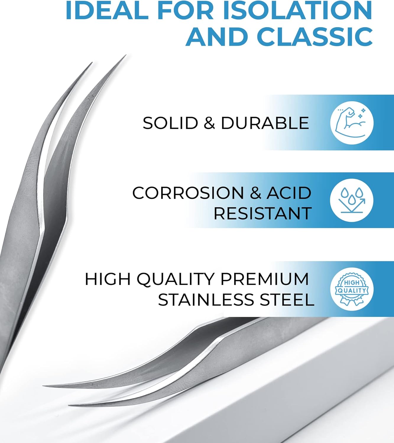- CONVENIENT & TOP-NOTCH - These professional eyelash tweezers are made of superior quality stainless steel, non-corrosive & acid-resistant, very solid. Coated in an anti-magnetic & non-slip material.