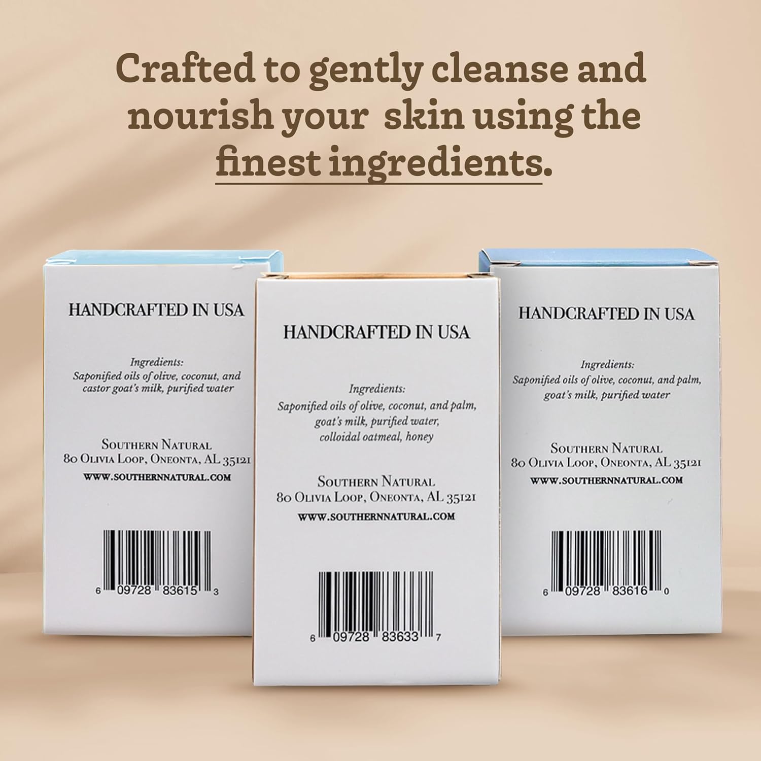 Southern Natural Goat Milk Soap Bar – Unscented Oatmeal & Honey, Castile & Unscented – Handmade for Dry, Sensitive Skin – Face & Body Wash for Men, Women, Kids, Baby – 3 pack (4-4.5 oz)