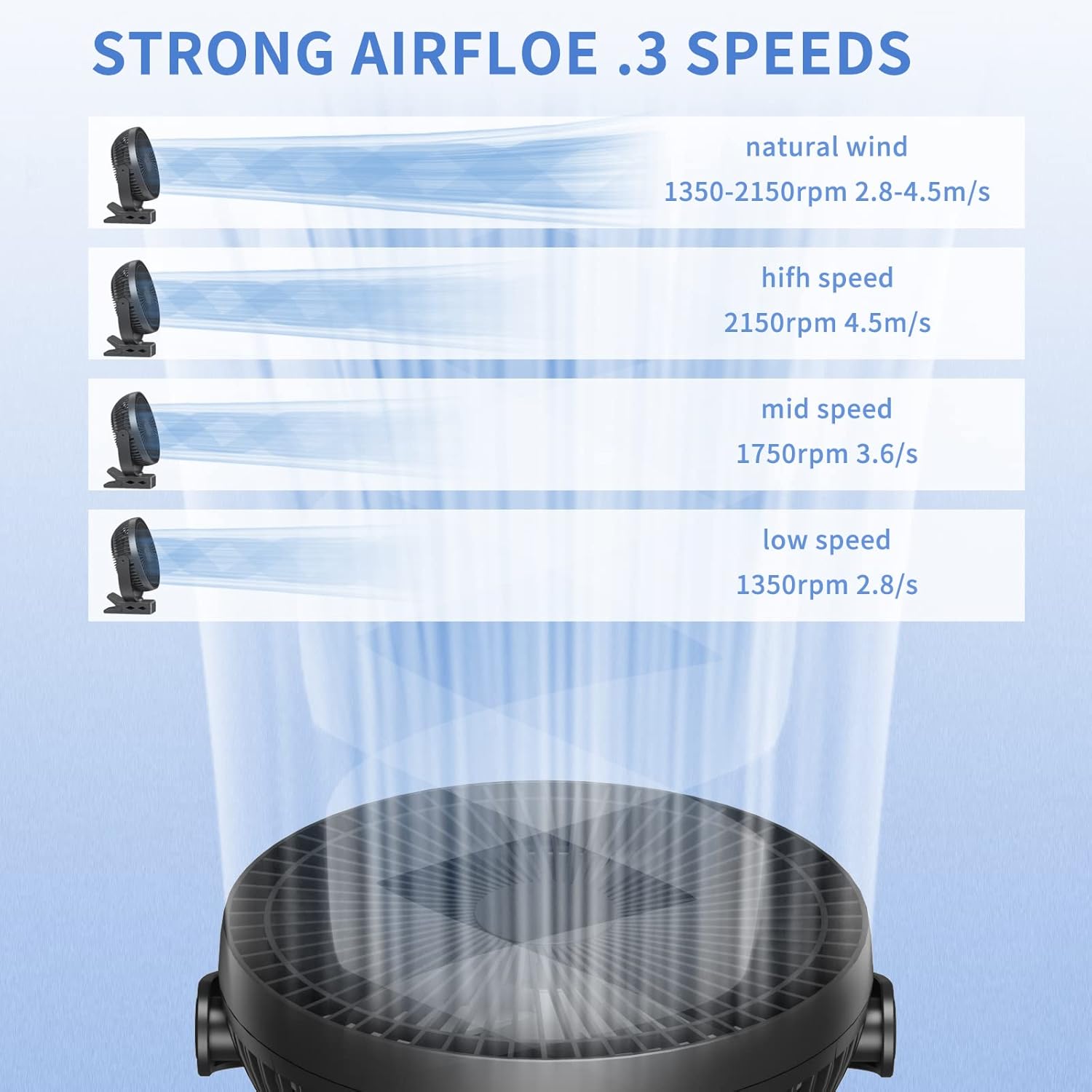- Rechargeable Fan - This battery powered fan comes with a 10000 mAh. It has the potential to run all day on a full charge. With its USB-C port, it offers 10W charging speed. The USB fan's charging port is compatible with a wide variety of devices, including laptops, phone adapters, power banks, and USB chargers.