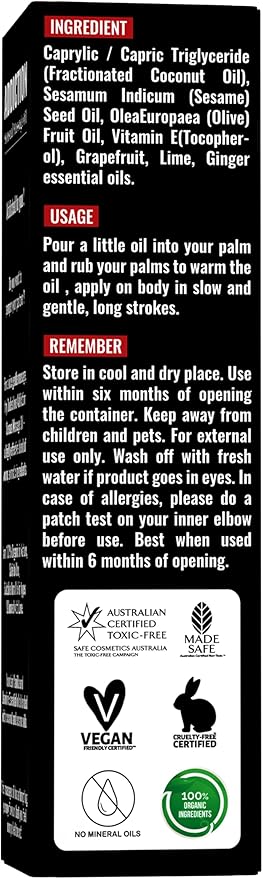 Organic - Grapefruit Full Edible Body Massage Oil - Refreshing, Calming | No Stain & Non-Sticky | with Fractionated Coconut Oil, Grapefruit & Lime Oil - 8.45 Fl Oz