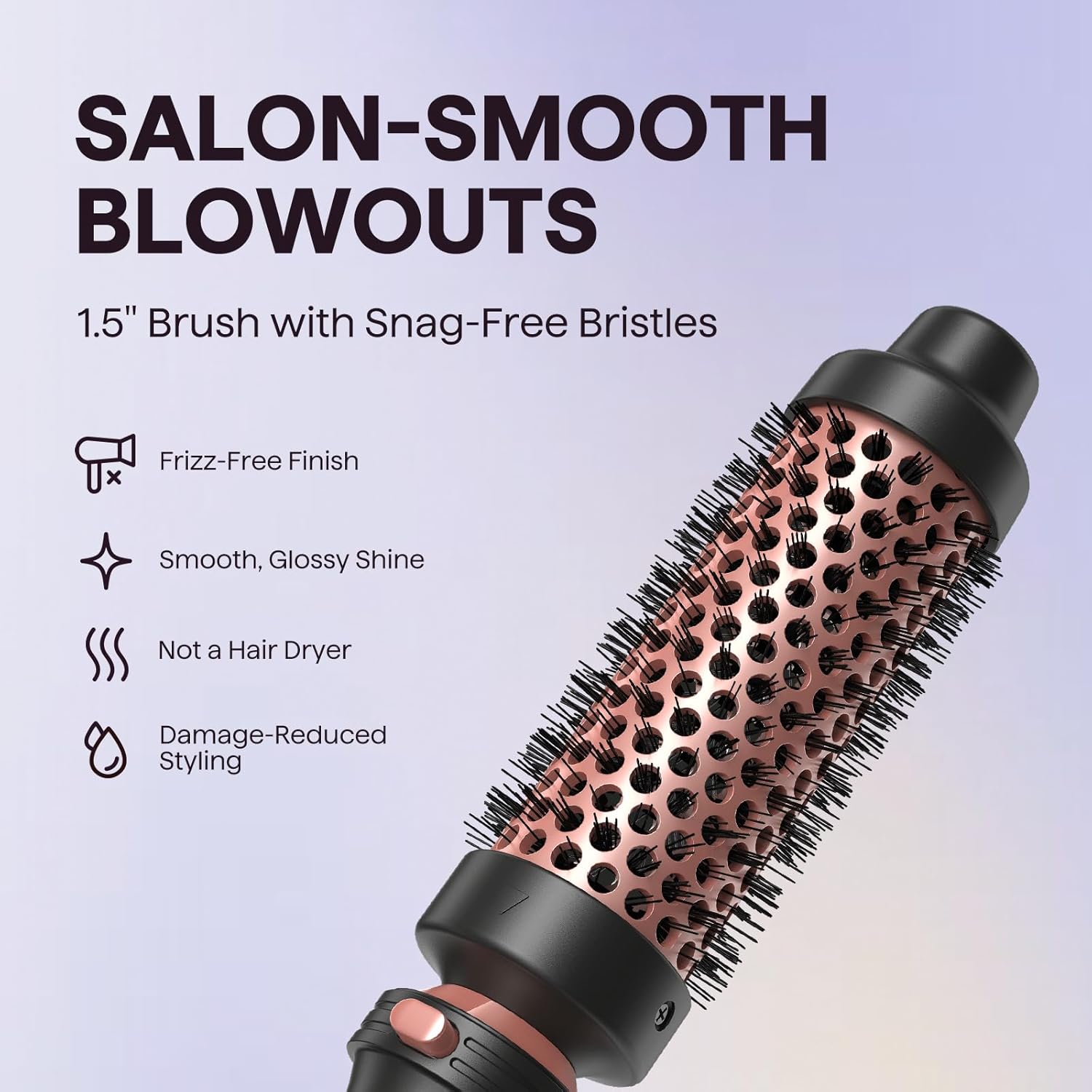 - Create Blowout Look. The 1.5 inch Curing brush (Does Not Blow Air) is engineered longer with thermal bristles that can grab and gently glide through hair, helping to wrap the hair around the barrel for a smooth styling. Perfect for volumizing and creating loose relaxed curls and Bangs
