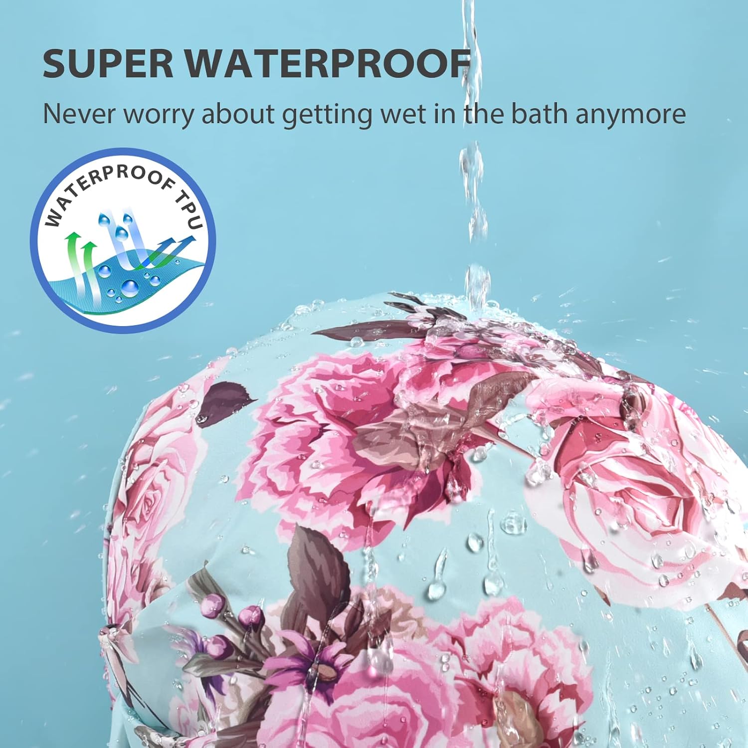- Double Layer Design for Upgraded 100% Waterproof: Made of premium polyester outer layer coated with waterproof TPU, protects against humidity. Avoiding water vapor or water from entering your cap, always keeping your hair dry while in the shower or bathe.