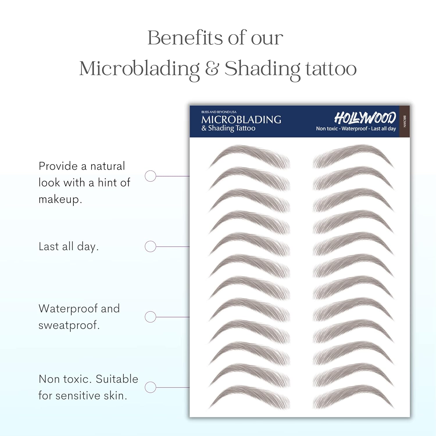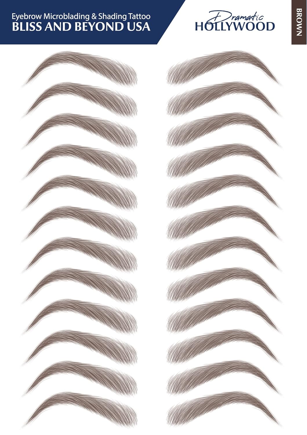 Bliss and Beyond USA, 2 Sheets Waterproof Eyebrow Tattoo Stickers, Long Lasting, Natural Looking Fake Eyebrows for Alopecia, Chemo, Cancer Gift. Same Size (Dramatic Hollywood, Brown)