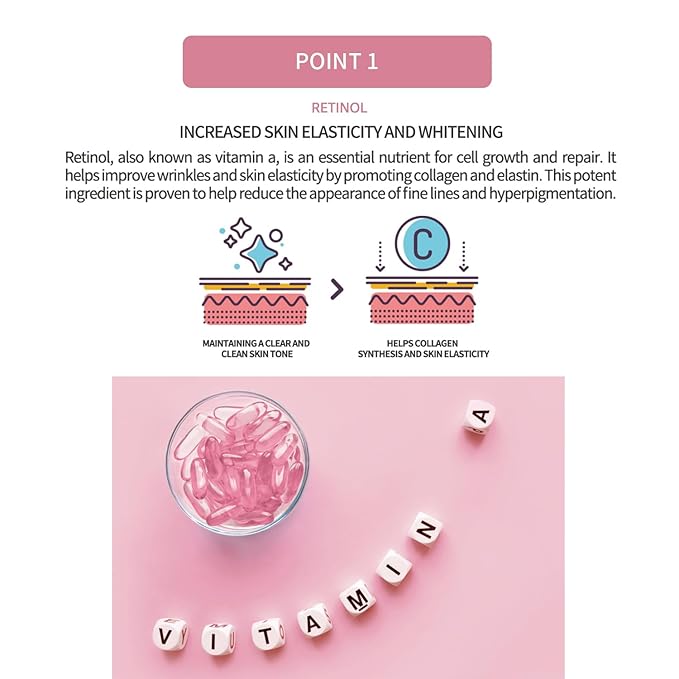 - It contains retinol to help restore elastic skin and five types of complex hyaluronic acid and extracts help moisturize and maintain elasticity of the skin