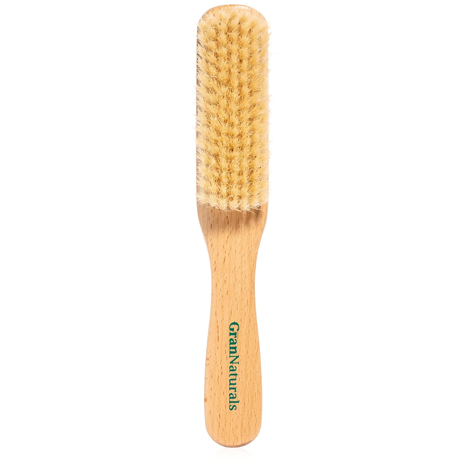 GranNaturals Boar Bristle Slick Back Hair Brush - Soft White Bristle Smoothing Hairbrush for Slicking Hair to Create Sleek Style- Natural Wood Handle for Women + Men