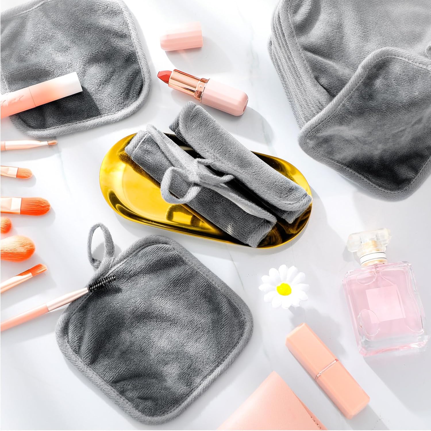 32 Pcs Makeup Remover Pads 5 x 5 Inch Soft Reusable Cloths for Eye Face Cloth Microfiber Washable Makeup Remover Towel Removal Cleaning Cloth for Women(Gray)