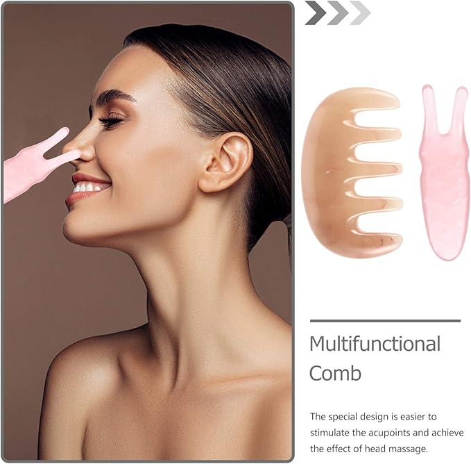 Healifty Resin Massage Comb 2Pcs - Guasha Scalp Comb, Handheld Gua Sha Scraping Massage Tool for Head Caring, Relax (Pink)