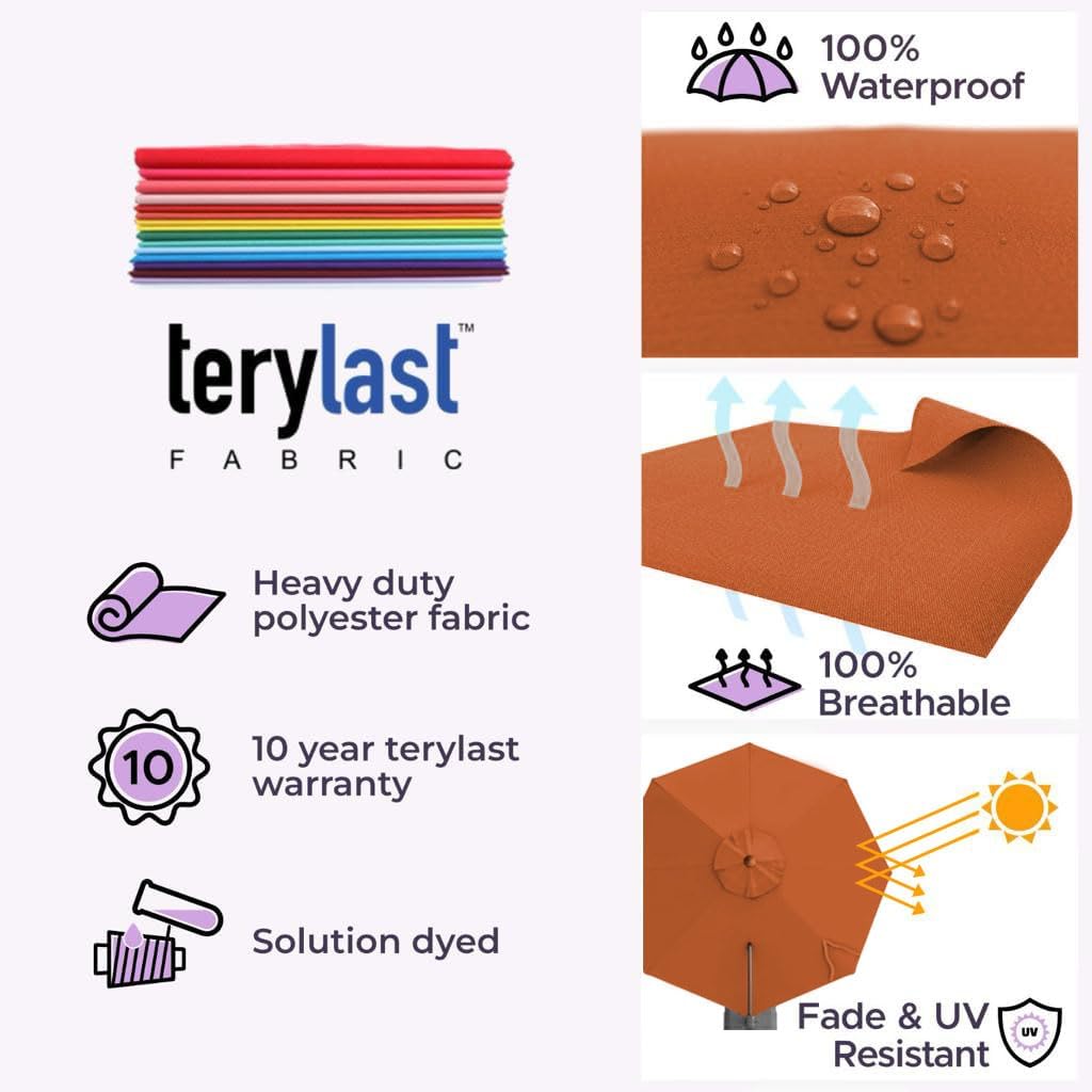Midtown Umbrellas 10 Ft Outdoor Cantilever Patio Umbrella w/Terylast Dark Orange Fabric - Rotate 360° Offset Patio Umbrella, Deck Patio Umbrella, Backyard Umbrella & Garden Umbrella - Silver Frame