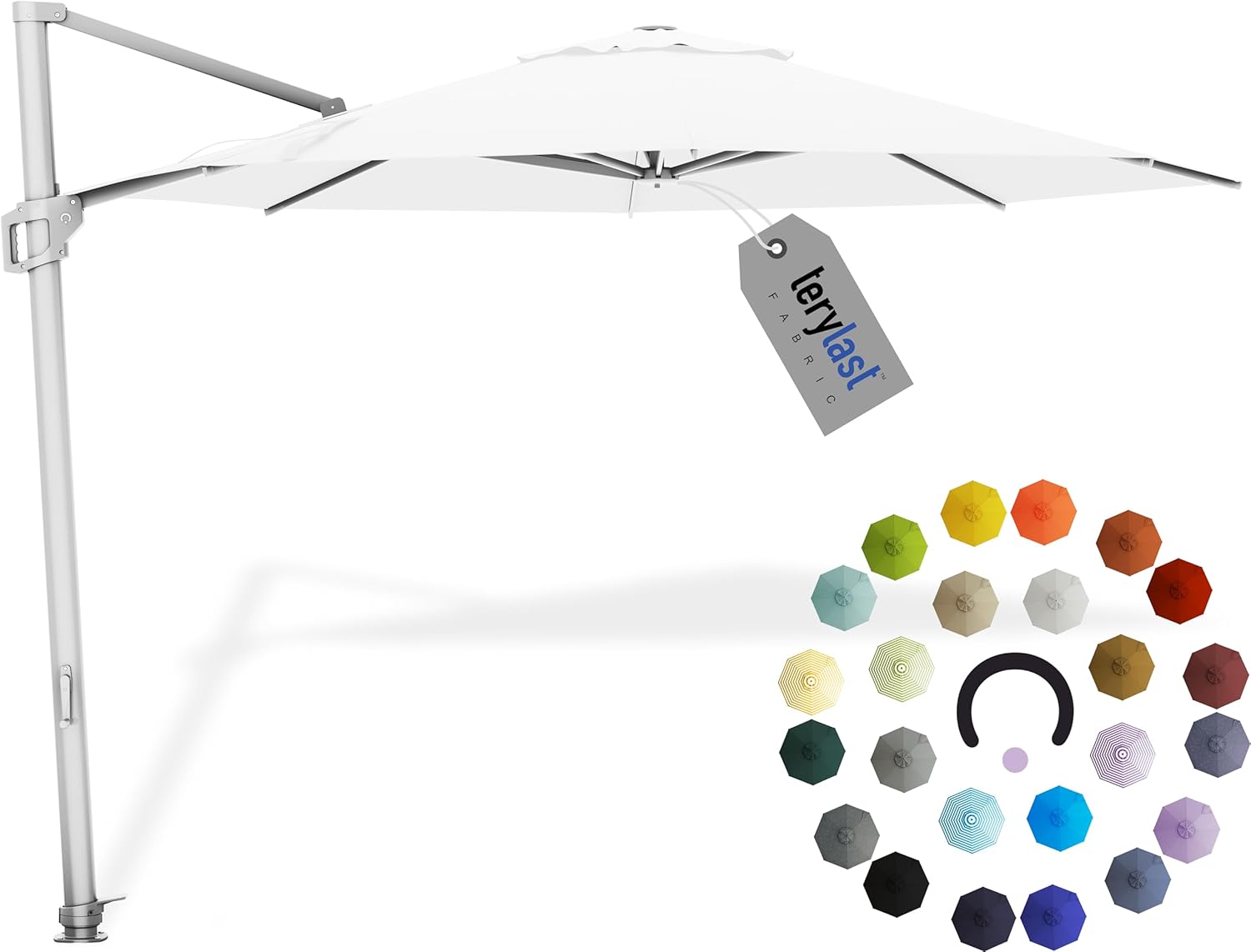 - [ WHAT YOU GET ]: 10 Feet Round Cantilever Offset Aluminum Patio Umbrella With Aluminum Ribs in Terylast Ivory (White)