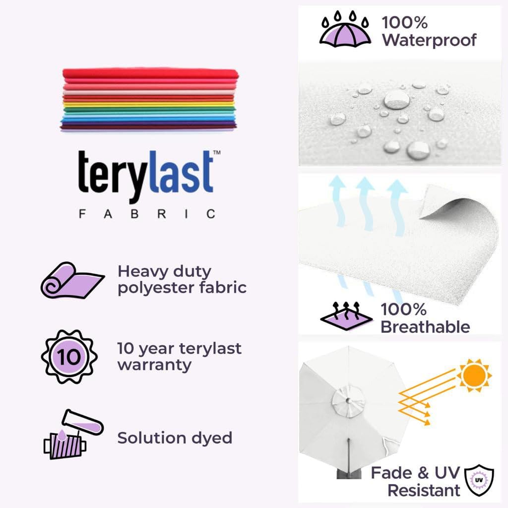 - [ WARRANTY ]: 10 year warranty on the Midtown 10 ft umbrella outdoor patio frame along with 10 year warranty on the Terylast fabric.