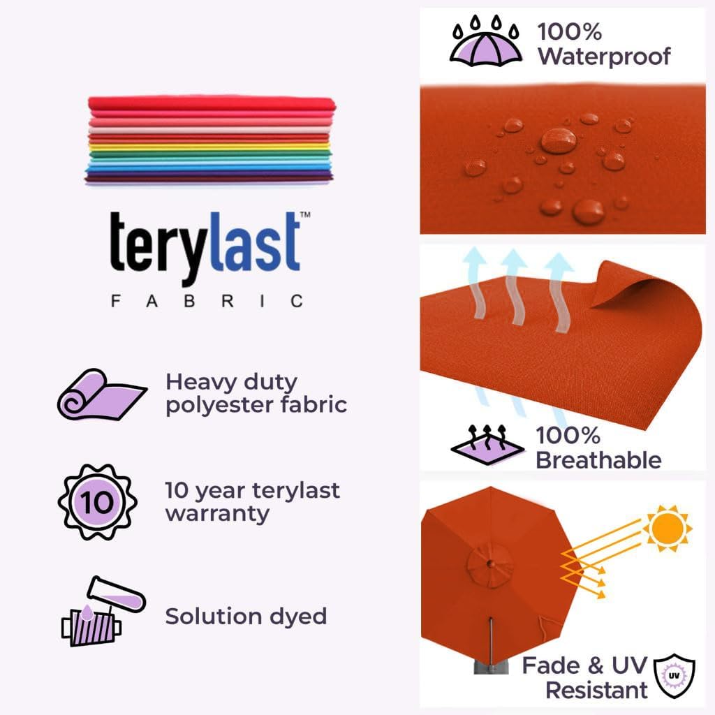 - [ WARRANTY ]: 10 year warranty on the Midtown 10 ft umbrella outdoor patio frame along with 10 year warranty on the Terylast fabric.