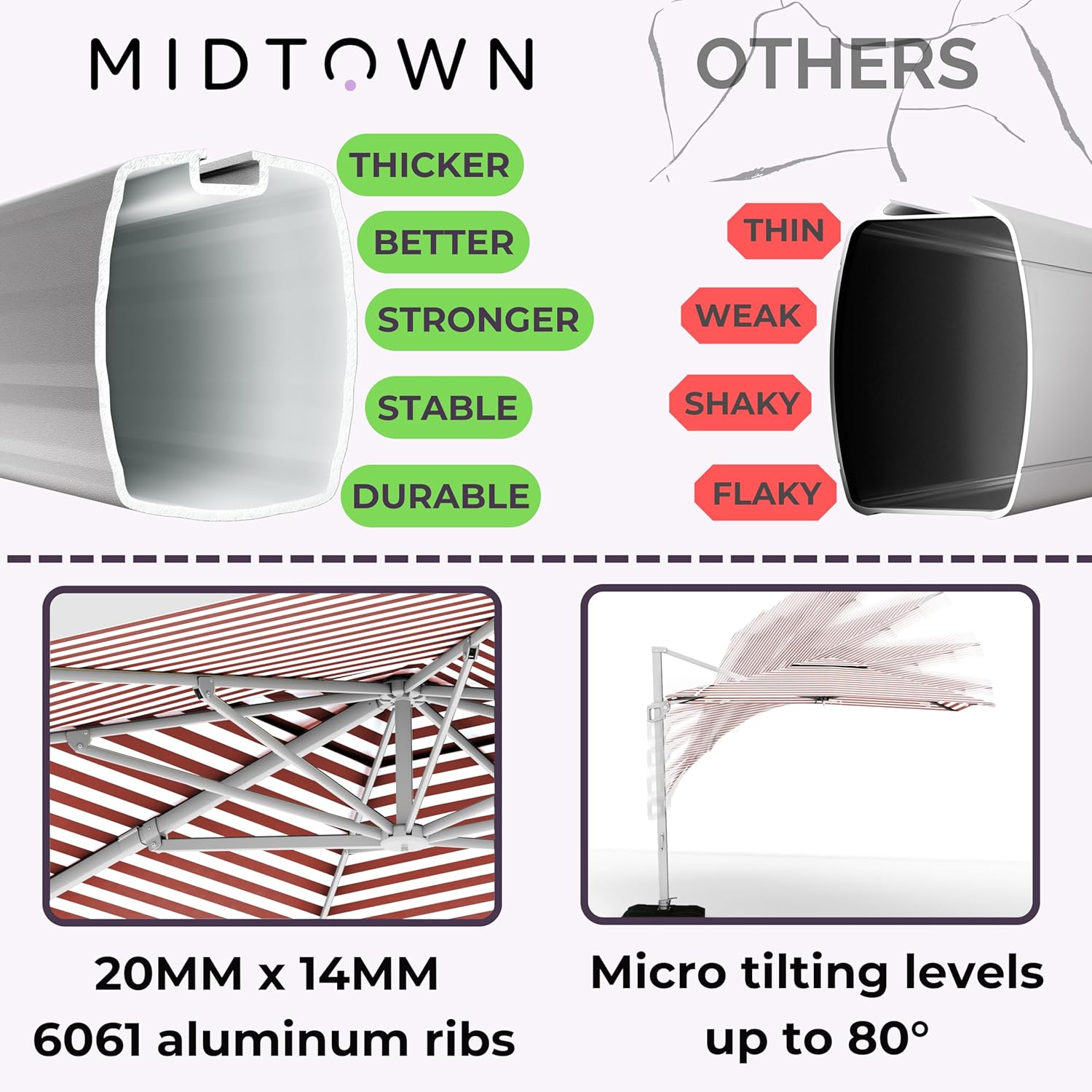 - [ WARRANTY ]: 10 year warranty on the Midtown 10 ft umbrella outdoor patio frame along with 10 year warranty on the Terylast fabric.