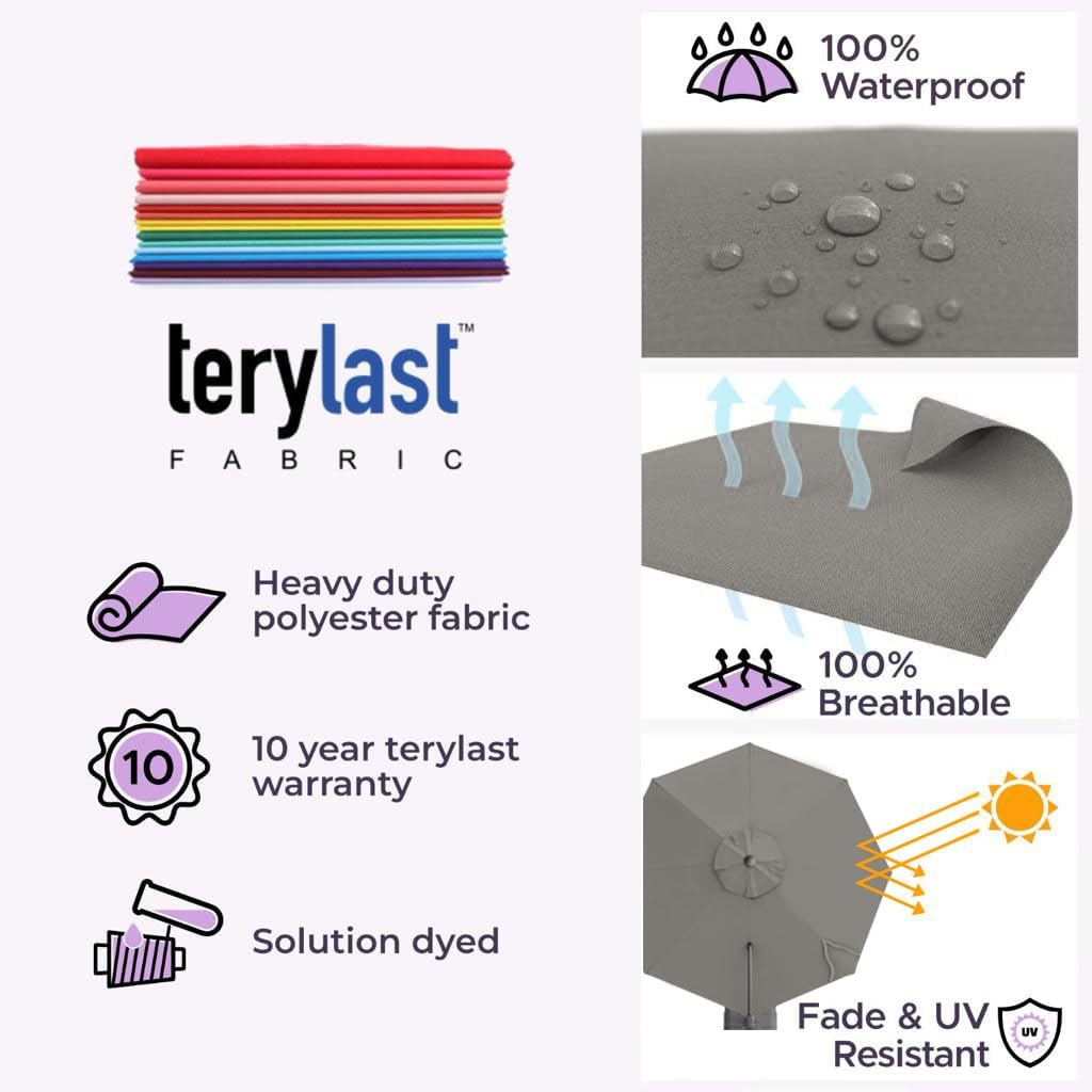 - [ WARRANTY ]: 10 year warranty on the Midtown 10 ft umbrella outdoor patio frame along with 10 year warranty on the Terylast fabric.