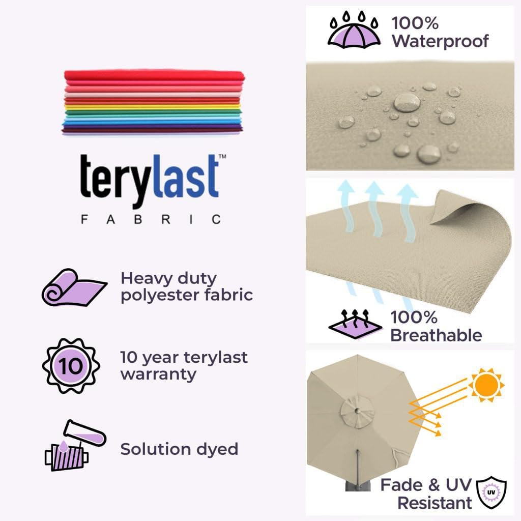 - [ WARRANTY ]: 10 year warranty on the Midtown 10 ft umbrella outdoor patio frame along with 10 year warranty on the Terylast fabric.