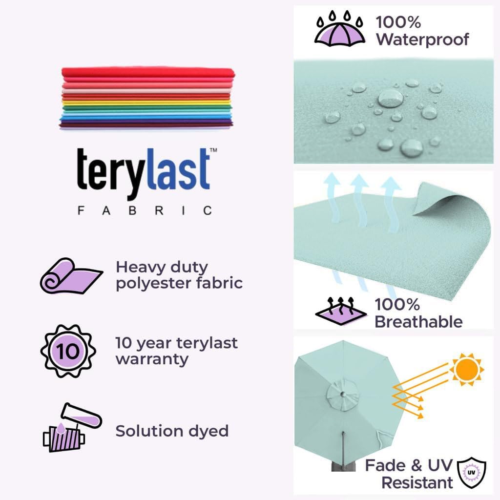 - [ WARRANTY ]: 10 year warranty on the Midtown 10 ft umbrella outdoor patio frame along with 10 year warranty on the Terylast fabric.