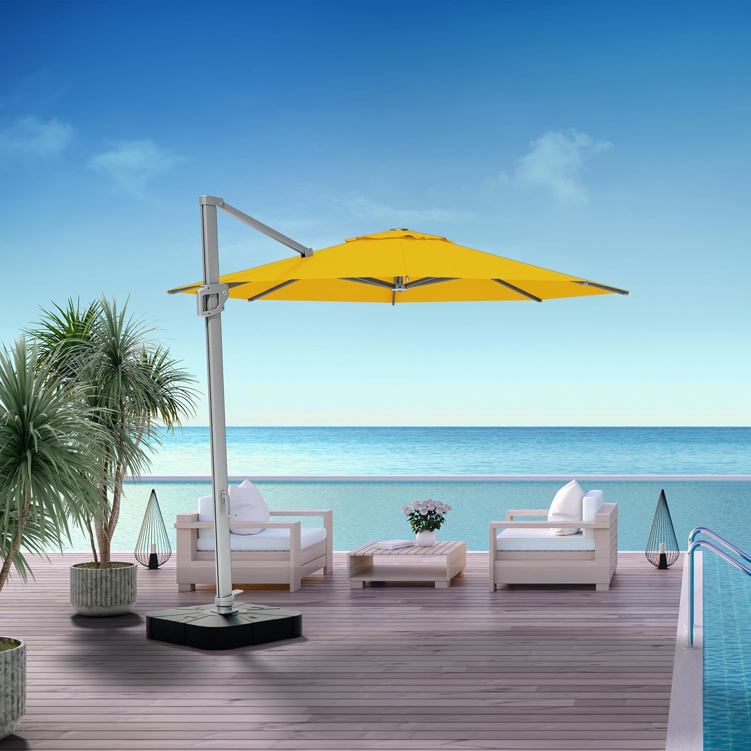 Midtown Umbrellas 10 Ft Outdoor Cantilever Patio Umbrella w/Terylast Sand Tan Fabric - Tilt 360° Offset Patio Umbrella, Deck Patio Umbrella, Backyard Umbrella & Garden Umbrella - Silver Frame