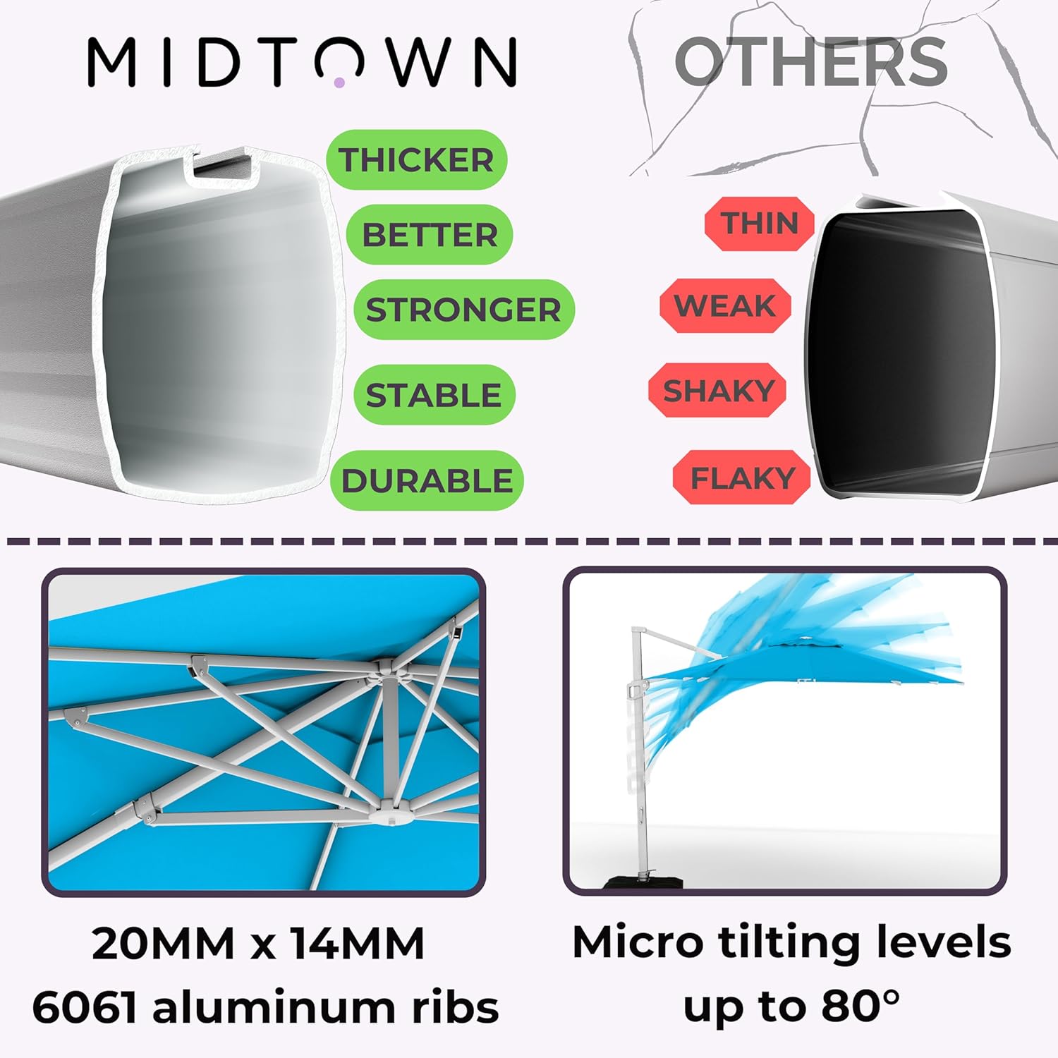 Midtown Umbrellas 10 Ft Outdoor Cantilever Patio Umbrella w/Terylast Cobalt Blue Fabric - Rotate 360° Offset Patio Umbrella, Deck Patio Umbrella, Backyard Umbrella & Garden Umbrella - Silver Frame