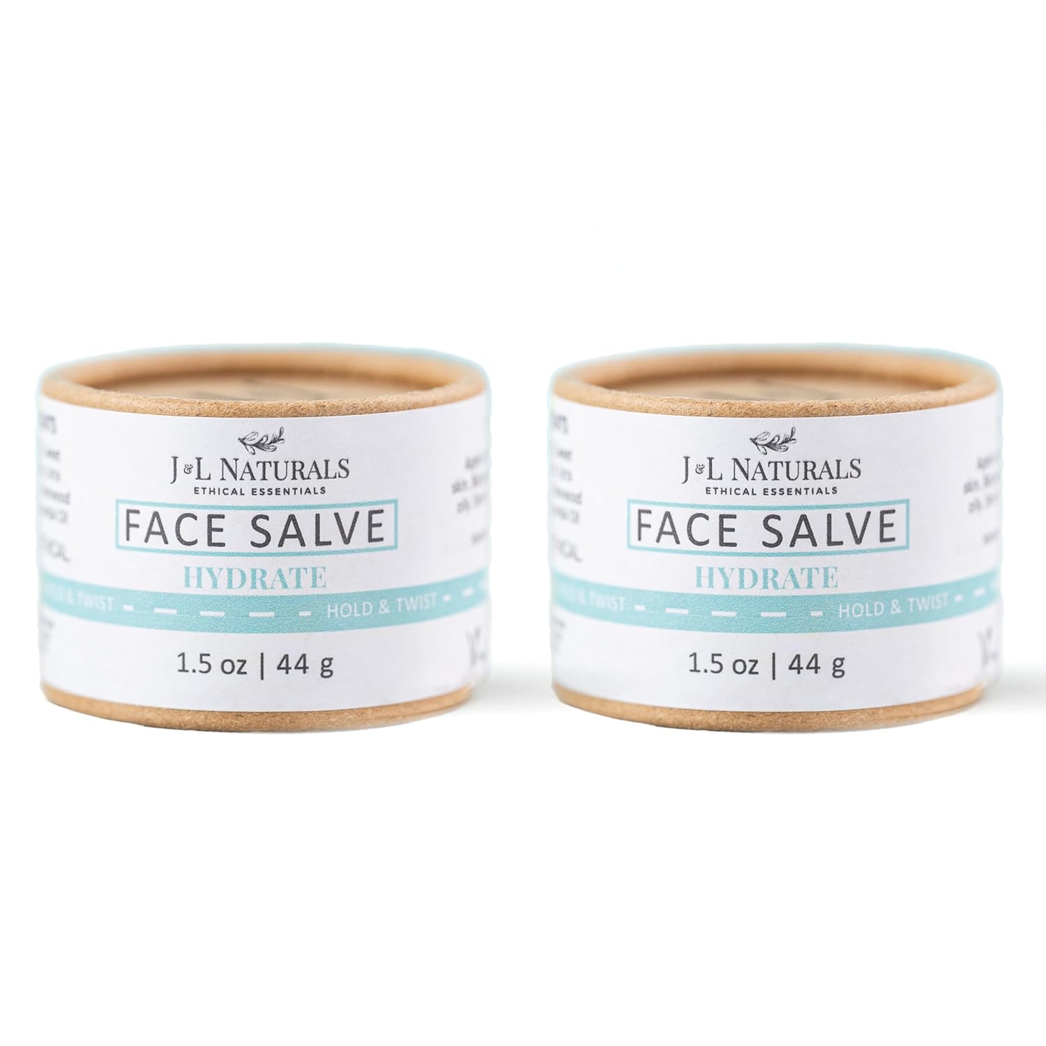 J&L Naturals Hydrating Face Salve Dry Skin Face Moisturizer | Organic Ingredients, 100% Natural, Eco-Friendly | Cruelty Free, Vegan, Paraben Free (2-Pack)