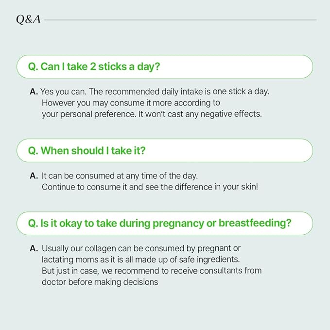 - Easy on-the-go Collagen : With our single-serve collagen stick packaging, you can take it anywhere with you (e.g. gym, workplace, travel, and others), supporting and fostering a more consistent skin-care routine.