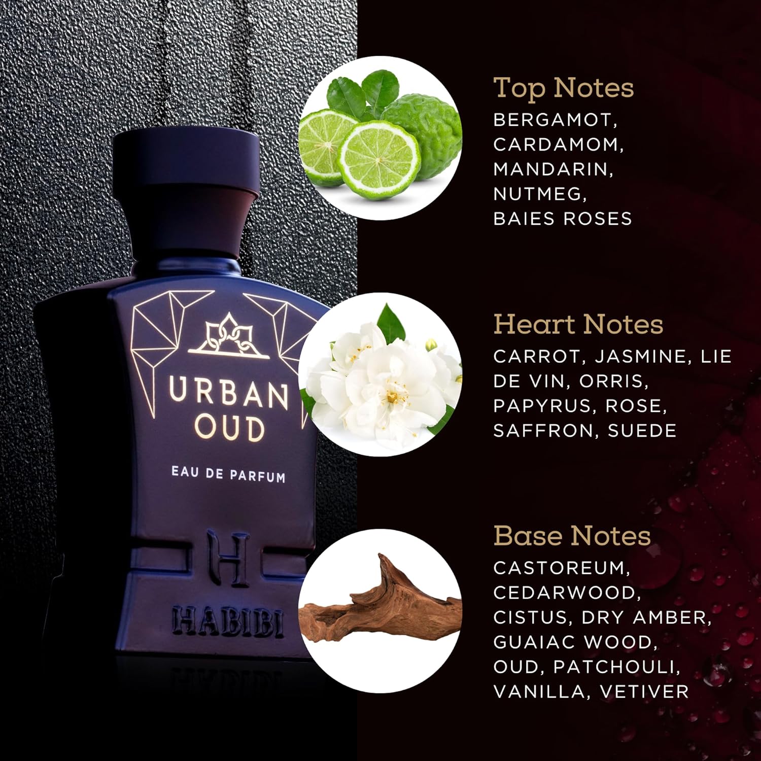 H HABIBI Urban Oud Perfume for Men – 2.5 oz (75ML) Long Lasting Arabian Cologne, Woody Citrus Oud Men Perfume, Luxury Fragrance Gift for Special Occasions