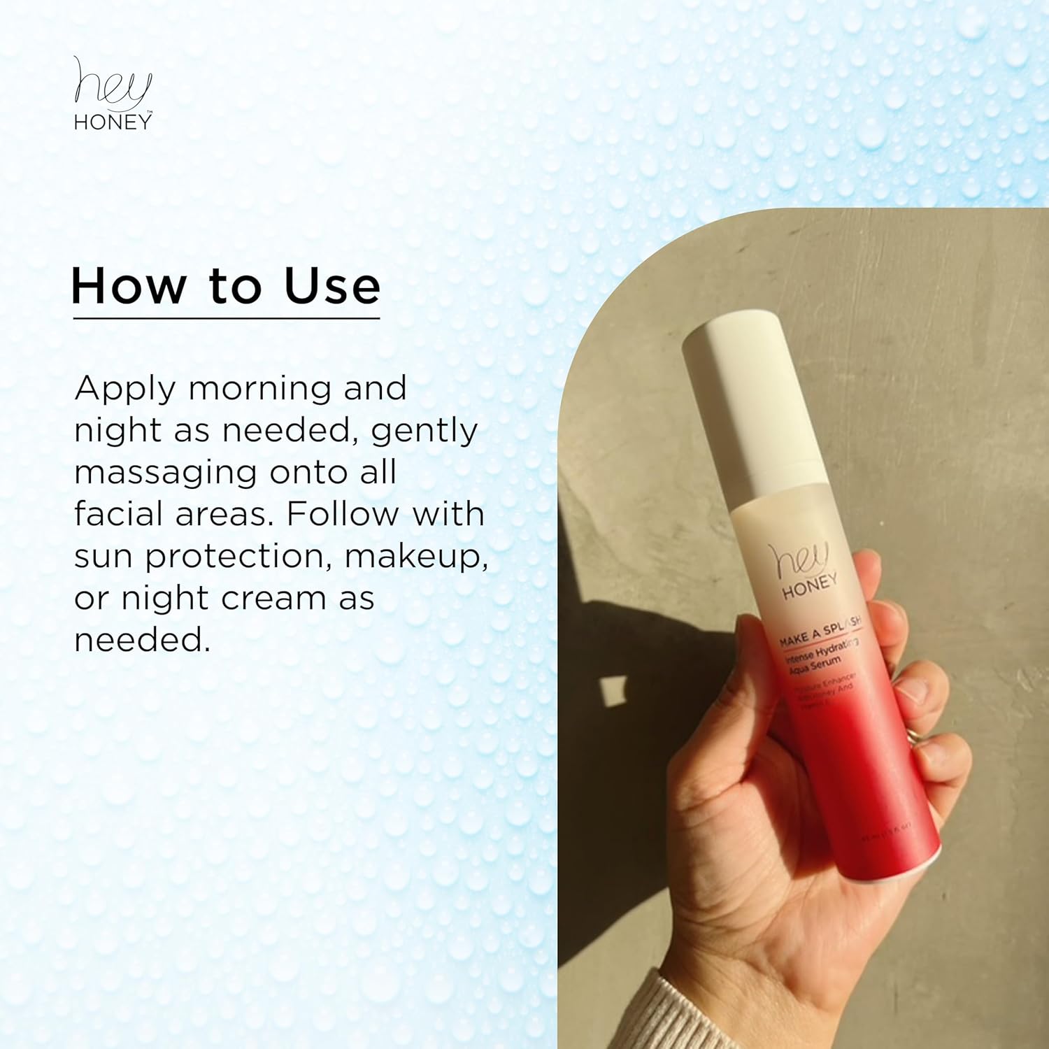Hey Honey Skincare Make A Splash | Intense Hydrating Niacinamide Aqua Face Serum | Intense Hydration with Anti-aging Benefits | 1.5 Oz