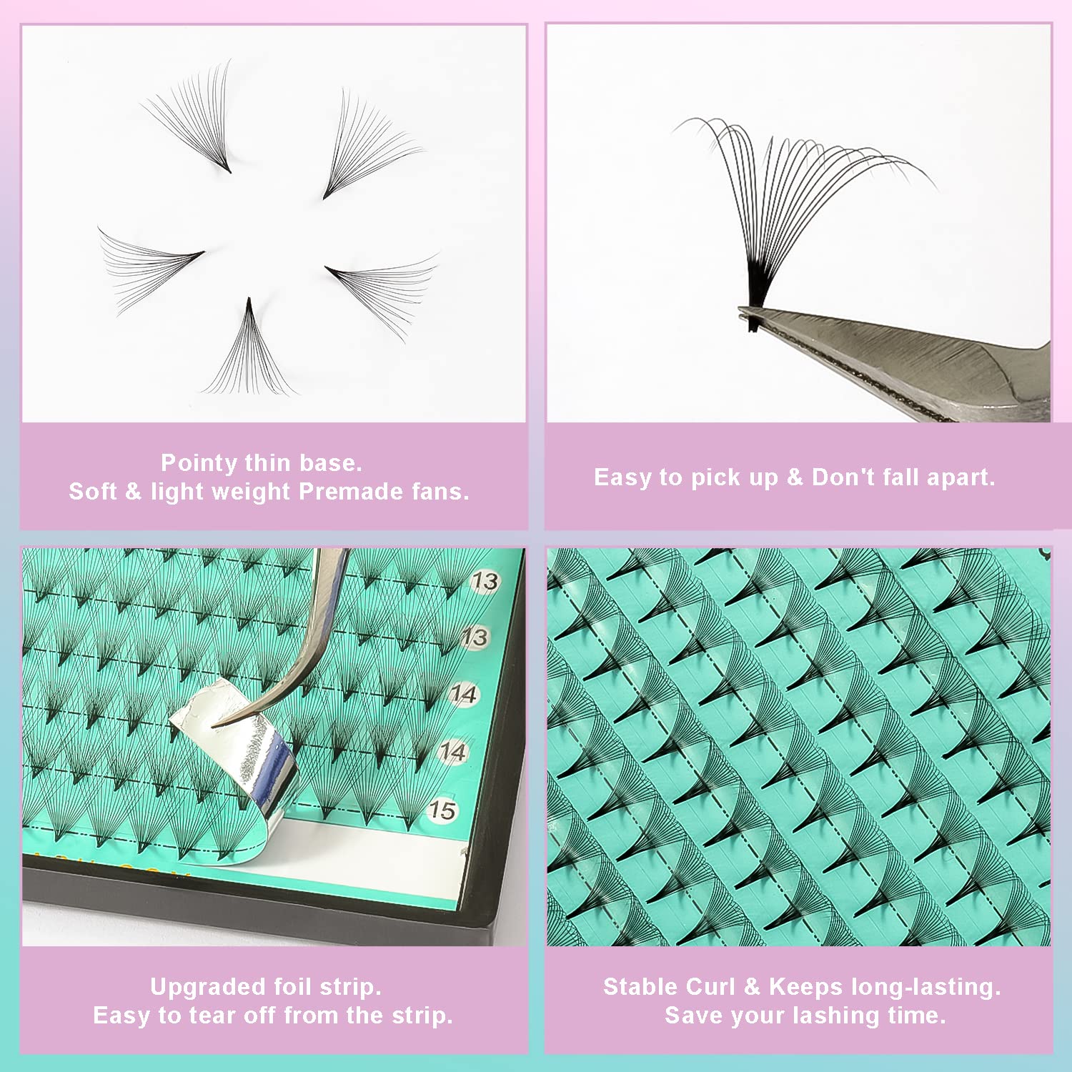 - Handmade volume eyelash extensions fans with very light and thin base,easy to apply and can make it blend better with the glue, making the effect more natural and lighter