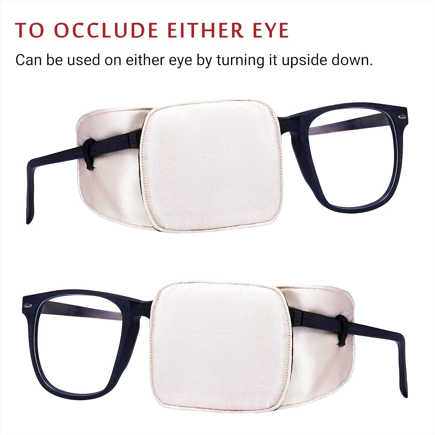 Astropic 2Pcs Large Silk Eye Patches for Adults Kids Big Glasses to Cover Either Eye (Large, Creamy Beige)