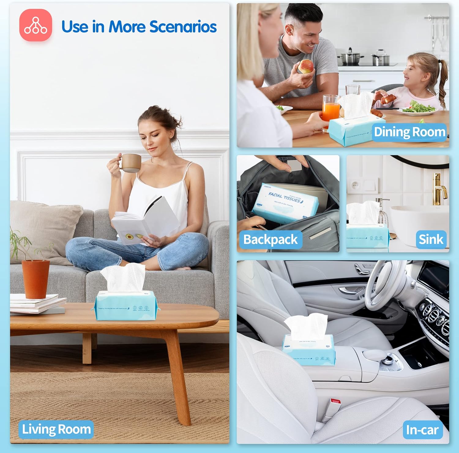 - ULTRA SOFT & NON-IRRITATING FACIAL TISSUE: Made from ultra-thick organic material, our soft facial tissues are strong but gentle on the skin. Without any chemicals, dyes, or lotions, these facial cleaning towels can dry your face without irritating the skin. These facial tissues are safe and effective for all skin types, including normal, oily, dry, or sensitive.