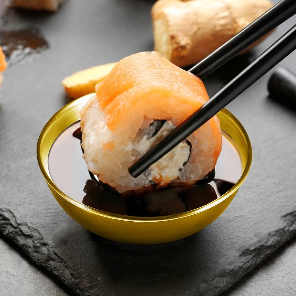 12 Pack 3.2inch Stainless Steel Sauce Dishes Mini Individual Saucers Bowl Round Seasoning Dishes Sushi Dipping Bowl Appetizer Plates, Golden
