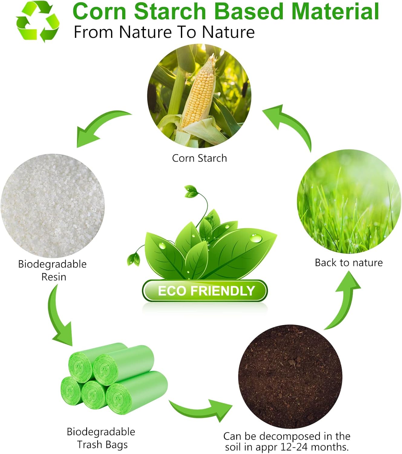 - Plant Starch Based Material These 2.6 gallon trash bag are made of natural corn starch (PSM-plant starch material). Inwaysin bathroom garbage bags 2.6 gallon is unquestionably unscented, non-toxic, and safe for pregnant women and children, blocking the unpleasant smell. Handy pre-cut perforations are great for easy dispensing. Please keep using INWAYSIN trash bags!