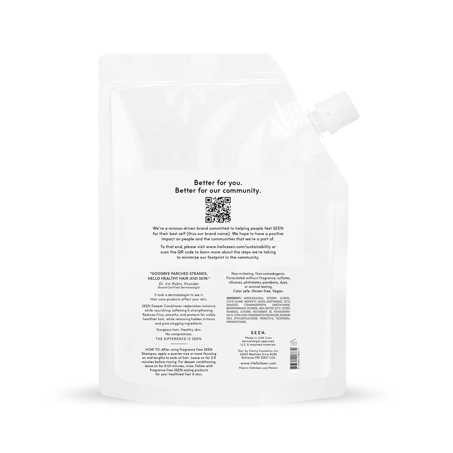 SEEN Deeper Conditioner Eco-Refill, Fragrance Free - Non-Comedogenic & Hair Conditioner- Dermatologist-Developed - Safe for Sensitive & Acne Prone Skin