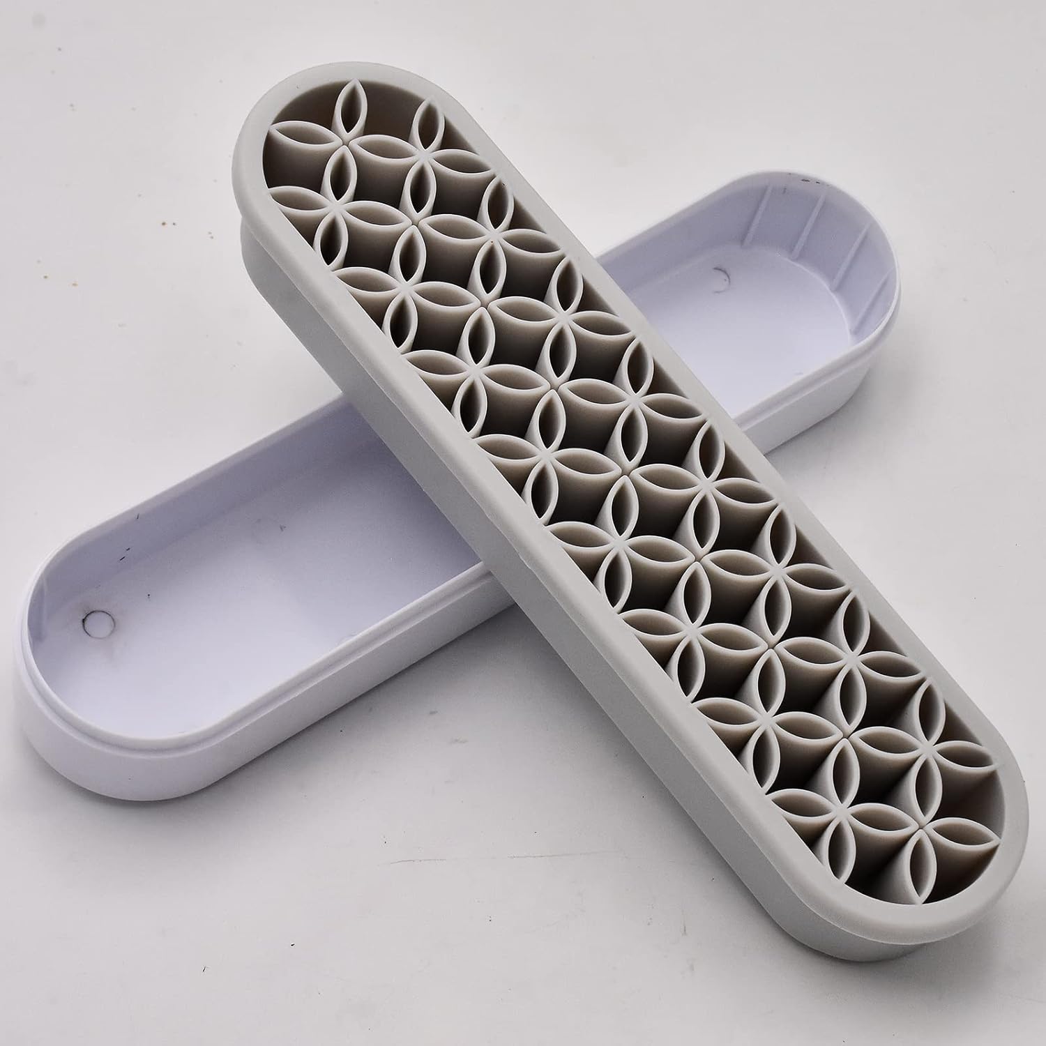 2 PCS Multi-Purpose Cosmetic Storage Box, Desktop Organizers Silicone Make Up Brush Storage Stand Desktop Storage Box for Brush,Eyeliner Pencil,Art Supplies, Painting Brush(Grey)