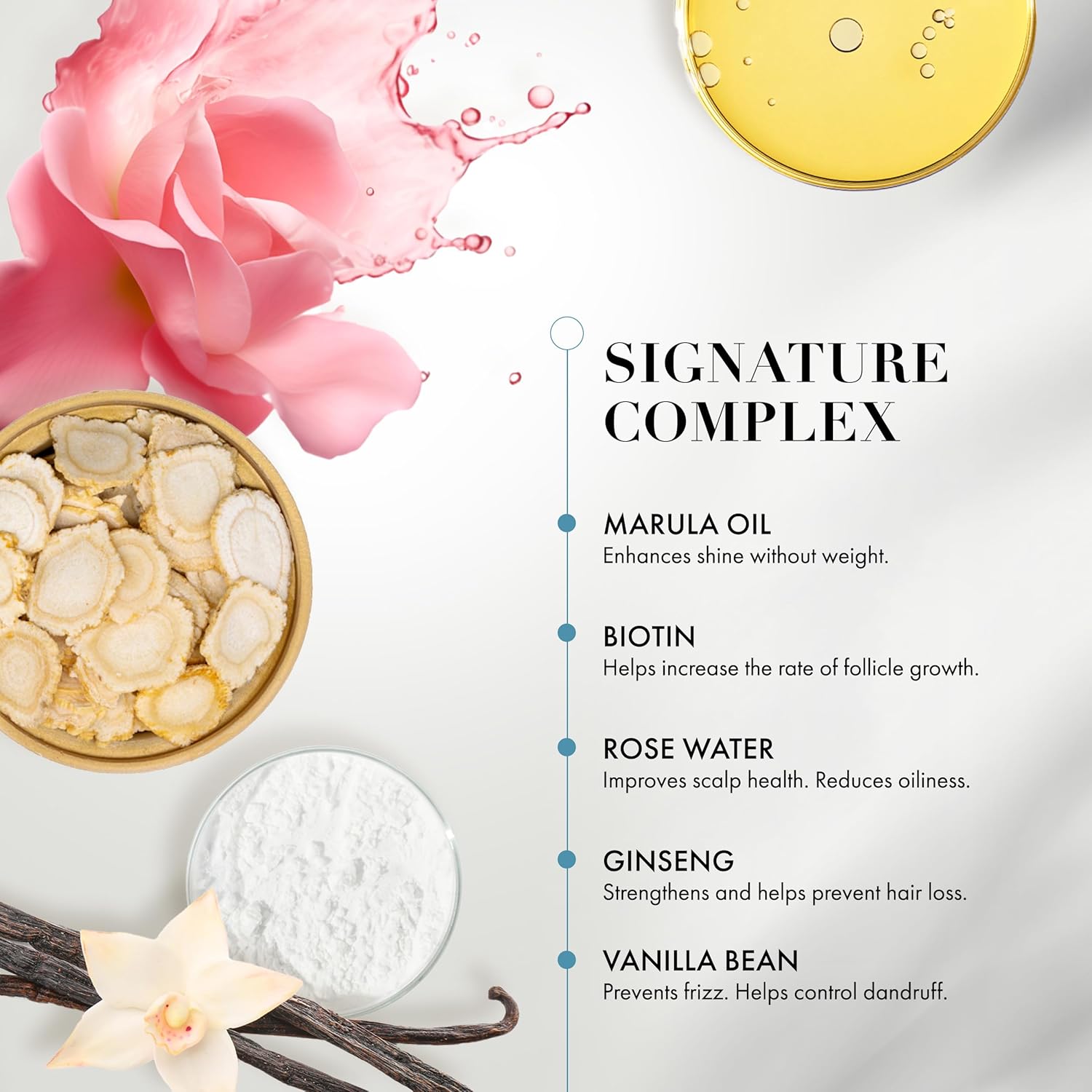 - Strengthens & Adds Bounce - Biotin supports stronger, fuller-looking hair while ginseng helps improve elasticity and liveliness.