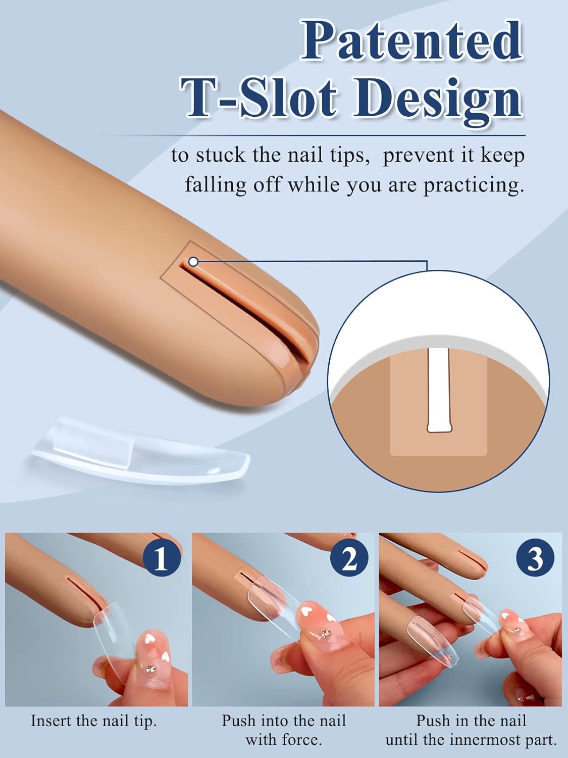 - 【Never Fall Off & Never Break】:Upgraded trapezoid shaped slot to stuck the nail tips, prevent it keep falling off while you are practicing. You don't have to worry about falling nail tips anymore!