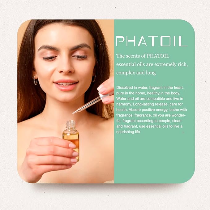 - ๐ง Wonderful Scent: PHATOIL essential oils are highly concentrated liquid derived from plants' flowers, leaves or other parts, which will provide you with a pure and pleasant aroma. The scents of essential oils are extremely rich, complex and long lasting.