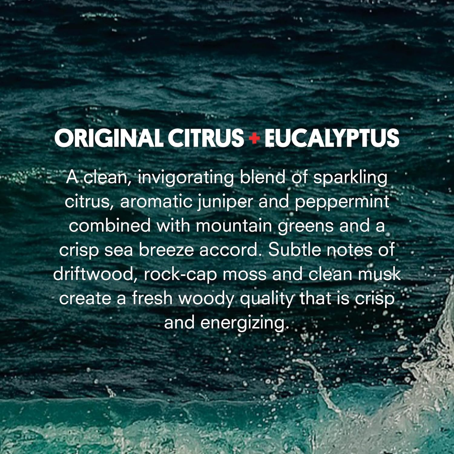 - CITRUS + EUCALYPTUS: A fresh & outdoorsy scent. Lemon cedrat, grapefruit, juniper & peppermint open the scent. Geranium, lime blossom, moss, and santolina shrubs create freshness. Driftwood and patchouli add a subtle woody quality that's energizing.