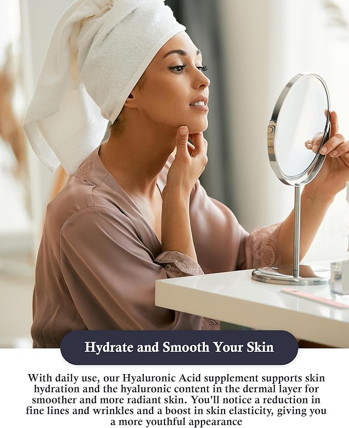 - Hydrate & Smooth Your Skin: With daily use, our hyaluronic acid supplement supports skin hydration and the hyaluronic content in the dermal layer for a more youthful appearance with smoother & more radiant skin.*