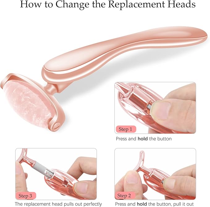 - You can change from the larger jade head to 2 other for cheek and eyes. There is a plastic clip on the heads that snap into place. You have to push in on the clip so its not in the hole and pull up on the head very hard, because it goes in the top of the handle tight so it’s not loose when using it. All 3 heads have a clip and go on tightly.