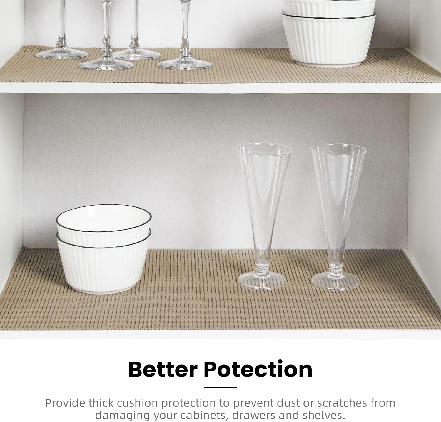BAGAIL Drawer and Shelf Liner, 17.5 in X 20 Ft Non-Adhesive Shelf Liners for Kitchen Cabinets, Thick Strong Grip Liners for Desk, Shelves, Bathroom Drawers, Cabinet Protection - Beige