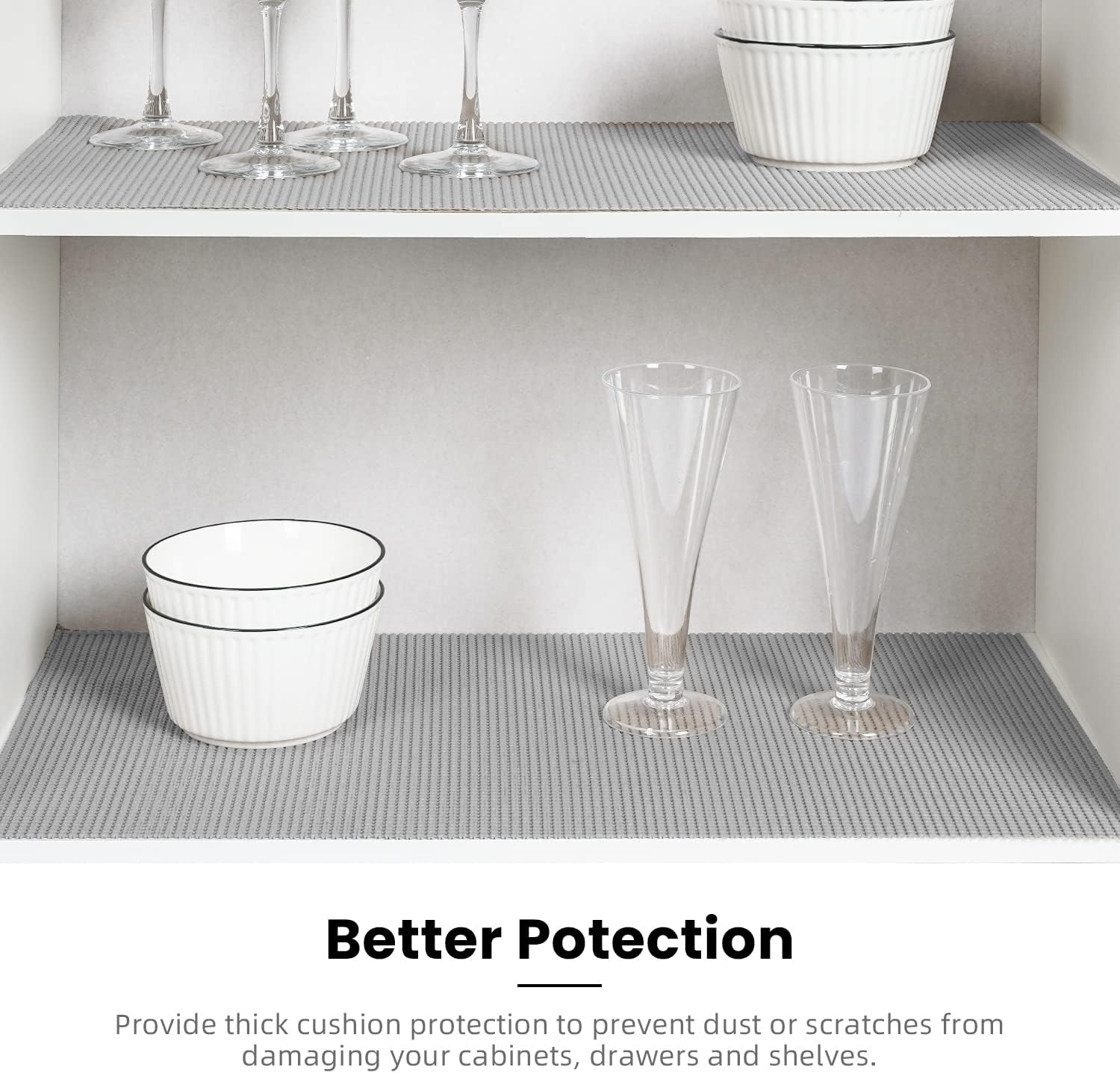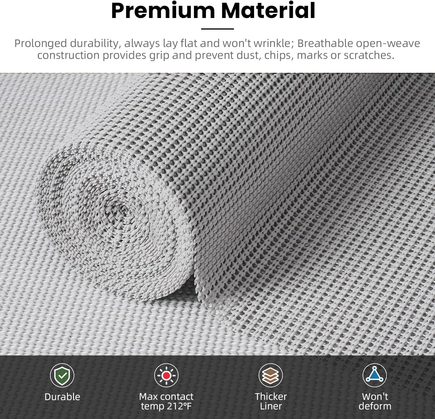 - PREMIUM MATERIAL - Made of high-quality PVC material, and won't deform, ensure long-term use without tearing; always lay flat and won't warp or wrinkle over time like other materials; open grid structure allows the surface to breathe while providing thick cushioning protection to prevent dust, chips, marks and scratches from damaging your cabinets, drawers and shelves.
