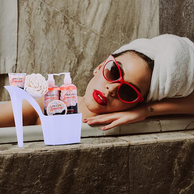 Draizee Mothers Day Gifts for Mom-Spa Gift Baskets for Women-8 Pcs Luxury Jasmine Scented Heel Shoe Design Bath and Body Spa Set Self Care Package for Women, Presents for Mom-Body Care Set for Her