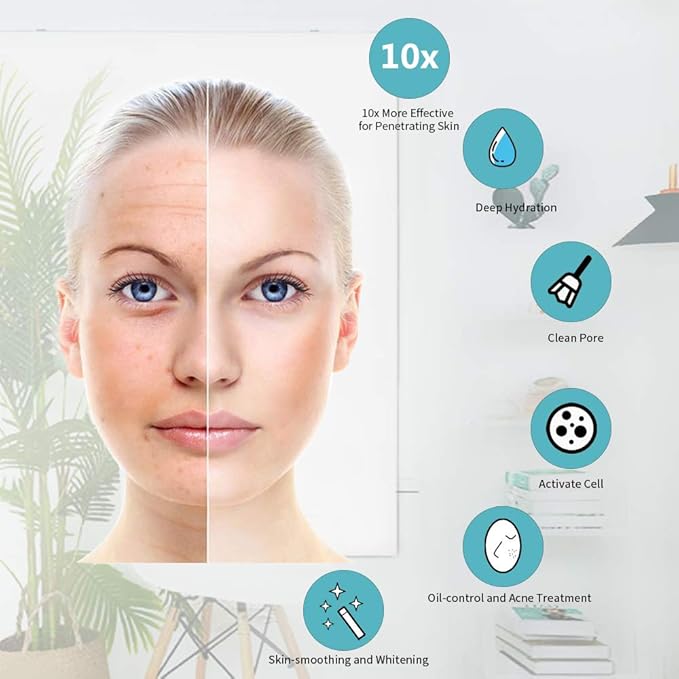 - 【Nano-ionic Steamer, 10X Penetration】Facial Steamer design use Nano-atomization technology, not only it can help dry skin by adding moisture, opens pores to allow better penetration,but also reduces acne and blackheads, 10X penetration,promote blood circulation, increase skin elasticity,and help to retain your youthful complexion.