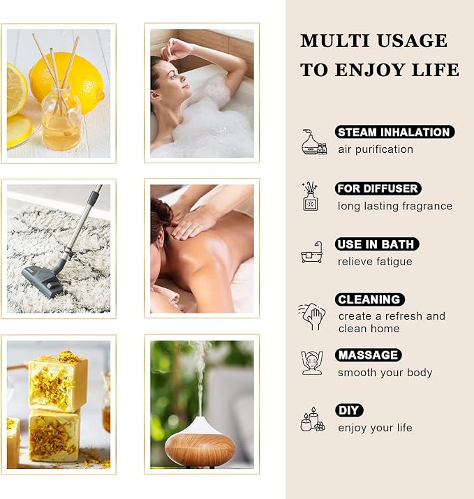 - MULTIPLE USES - Suitable for diffuser, DIY soap, candle making, bath bombs etc. Add some fragrance to your daily routine and fully enjoy the fun of the benefits of aroma.