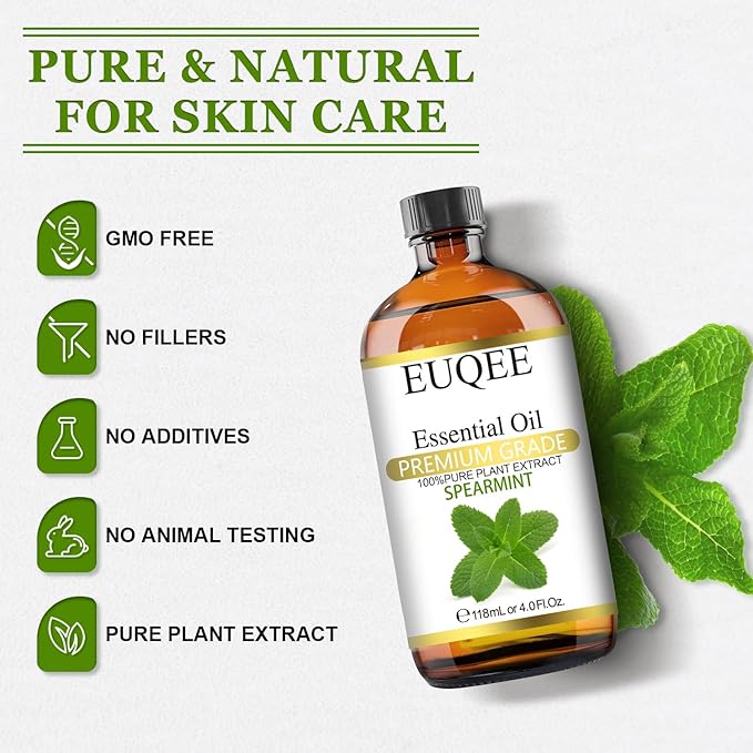 Spearmint Essential Oil Premium Grade Spearmint Oil Essential Oil with Glass Dropper, Great for Humidifier, Candle Making, Diffusers (118mL/4oz)